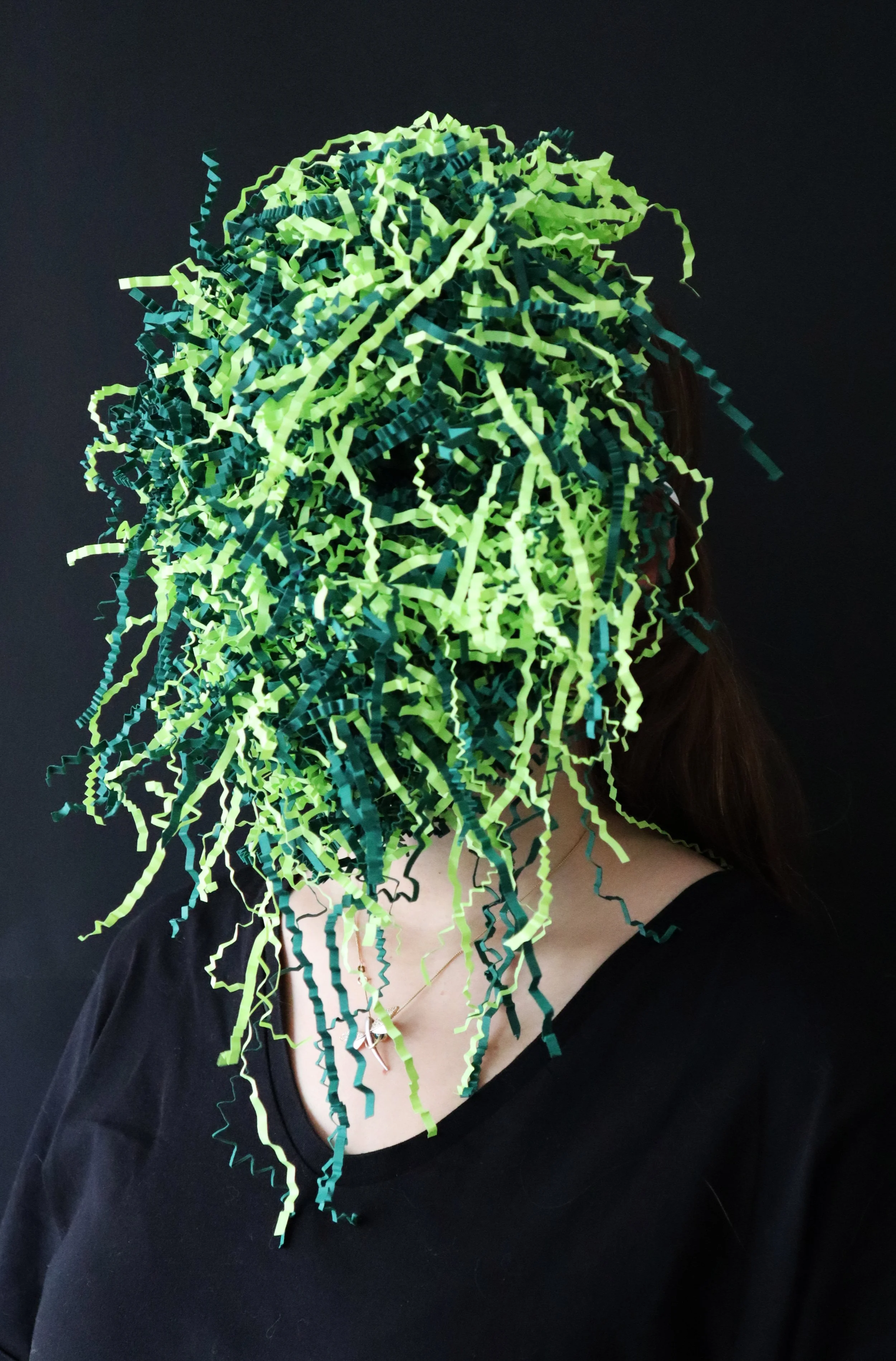 It is a straightforward allegory of escape and disappearance suggested by colorful distractions. although we can see the person behind the mask, we are unable to identify them. masks grant the ability to conceal and deceive, which can be interpreted as authority. you will see that, when you look at the three masks, the pipe mask and neon green mask are the ones that you are most drawn to. the black-silver curved mask is a wonderful illustration of distractibility because it has more faded tones when compared to the others. which leads to clutter in color perception of the viewer.